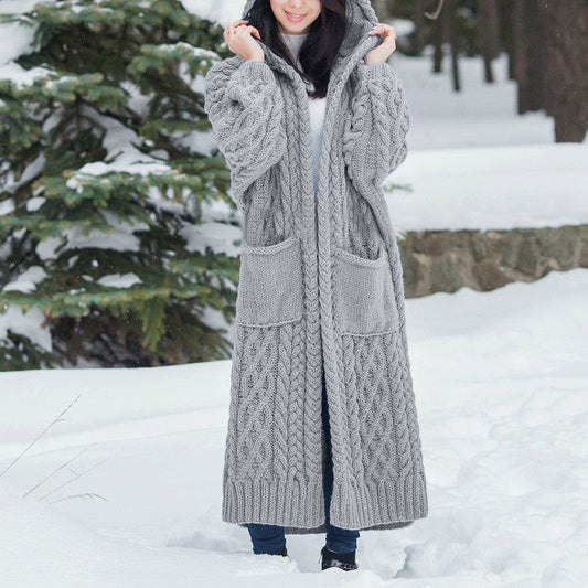 Manteau à capuche en tricot avec poches larges